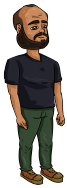 um pouco forte, careca e com barba, olhos negros e mede 1,60. Na Série 7 tem 28 anos.