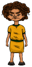 Pré-adolescente de 10 anos afrodescendente, olhos castanho claros, tem 1,30 de altura, magra. Tem cabelo castanho escuro.