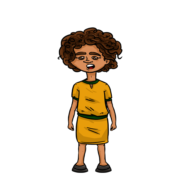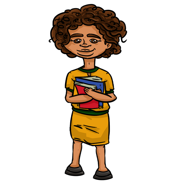 Um pouco introvertida e amante dos livros. Sua cabeça sempre está em outro lugar, pensando em ser uma heroína das histórias. Já ouviu falar do Pensamento Computacional através da Rafaela. Adepta do candomblé, acaba sofrendo preconceito na escola por sua opção religiosa.